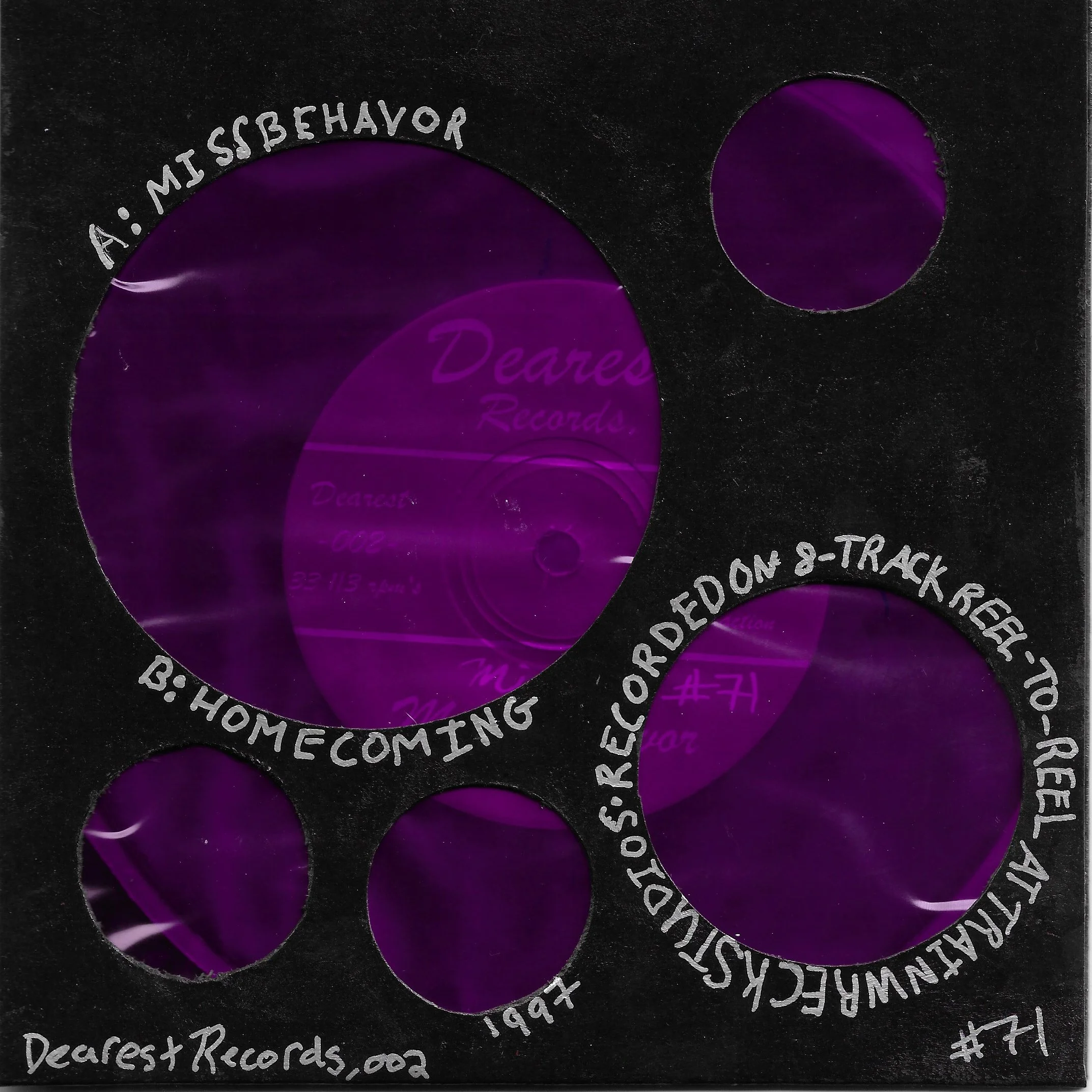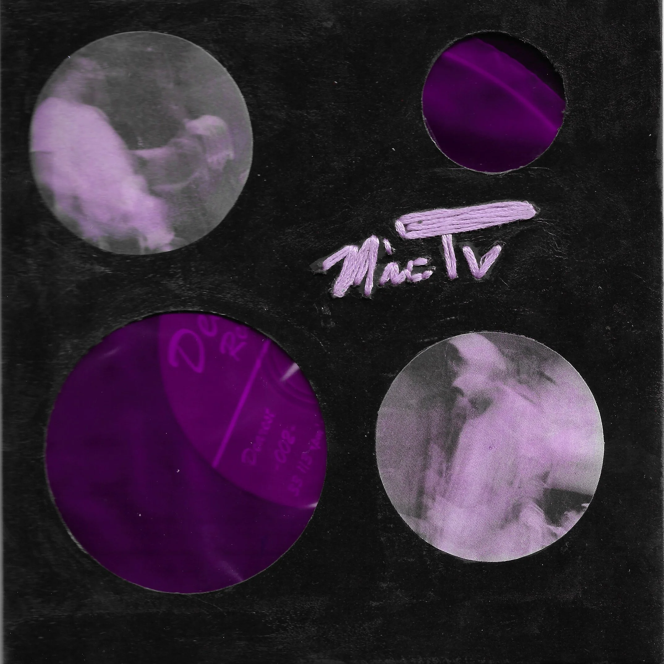 Materials/Attribute: glossy black cardboard cover with circle cutouts, pink cellophane, pink thread, watercolor, acrylic paint pens, and Mic TV photo sticker.