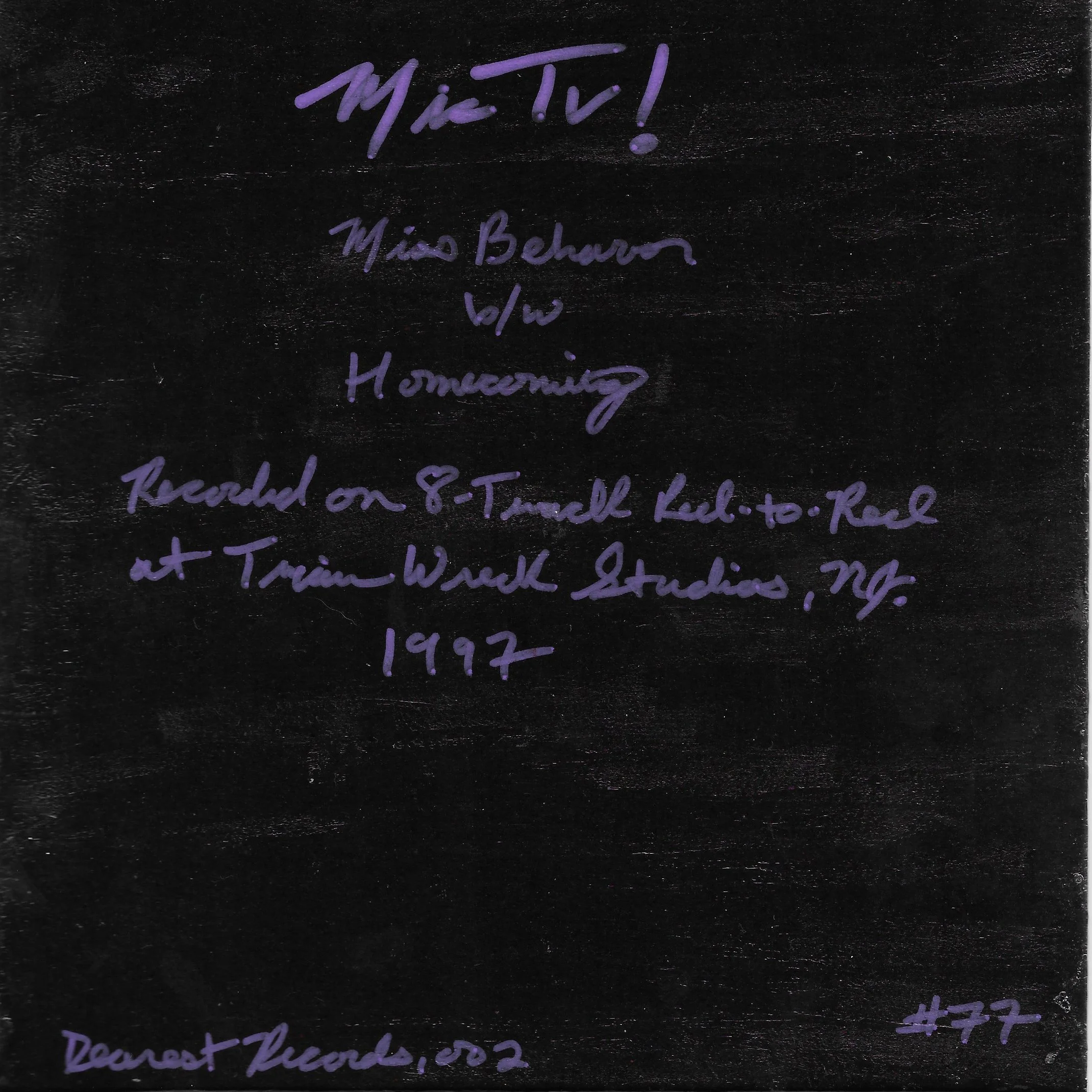 Materials/Attributes: glossy black cardboard cover, acrylic paint pens, Mic TV photo sticker, rivets, and melted clear cellophane.